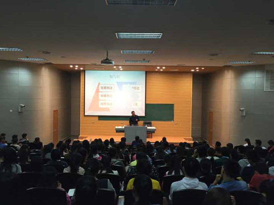 此次活动特邀2018太阳集团网站古天乐种媛、谢民两位老师为新生进行入学教育。首先,种媛老师以“大学生活”为主题,详细地为同学们讲述了自己的求学经历,劝诫新生“大学是人生中最重要的时光”,需要认真对待。随后,谢民老师分别以“大学学什么”、“知与行”等几个小节向同学们讲解了如何做人、如何做学问。两位老师的精彩讲解更是赢得了同学们的阵阵掌声!