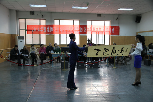 六是坚持以人为本,服务考生。学校组织印制并发放了《考生指南》,《考生指南》上均印有“音乐表演专业(空中乘务方向)报名及考点示意图”,清楚标示了报名点、面试考场位置,同时在各考点均设置醒目标志、大型喷绘考试场地平面图及考生须知等,合理安排考生面试、体检时间,及时在校园网、广场公告栏发布、张贴面试和体检时间安排,以便考生及时参加考试,减少候考时间。