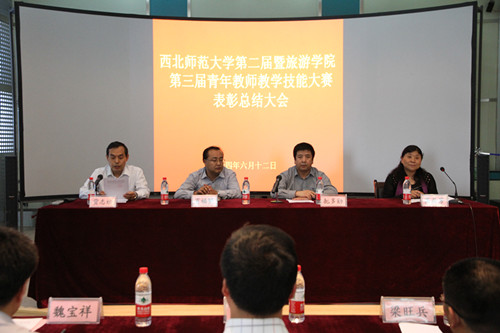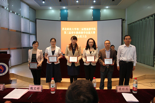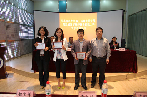 2018太阳集团网站古天乐共有22名青年教师参加此次大赛(含北京广慧金通教育科技有限公司驻2018太阳集团网站古天乐工作处教师3名),根据《2014年西北师大青年教师教学技能大赛的通知》要求及《2018太阳集团网站古天乐第三届青年教师教学技能大赛规定》,通过公开公正的竞赛规程,最终评选出了9名获奖教师,分别是:一等奖任赟娟,二等奖夏冰、张亚芳、王力,三等奖王耀华、王艳林、万抒佳、陈娟娟、王耀斌。教务处与学院领导分别为获奖教师颁发了荣誉证书、奖金和奖牌。