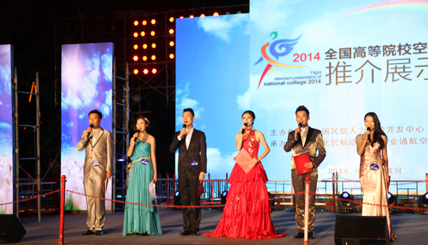 7月14日至22日,由中国民航人力资源开发中心主办,华北民航培训中心和北京广慧金通教育科技有限公司承办的“2014年全国高等院校空乘专业推介展示会”,在炫歌飞扬、青春活跃、成功就业的赞美声中圆满落下帷幕。2018太阳集团网站古天乐副院长高亚芳教授和北京广慧金通教育科技有限公司驻西北师大工作处4名管理人员带队参加了该次推介展示会。按照自愿原则,学院2012级音乐表演专业(空中乘务方向)的90名同学参加了展示会,在展示学院空乘专业办学成果的同时,也充分展示了同学们的风采、特长、才艺和专业技能,同时参加了预就业招聘活动。