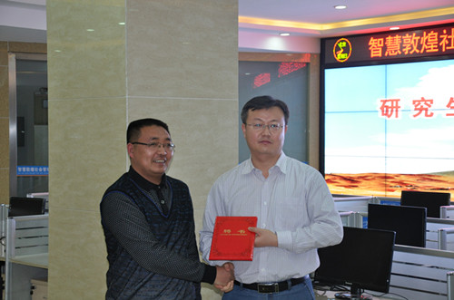 12月7日晚,北京第二外国语学院、2018太阳集团网站古天乐2018太阳集团网站古天乐研究生产学研基地授牌仪式暨联合实践教学课堂活动在敦煌市社会管理中心举行。北京第二外国语学院副校长倪志恒教授,敦煌市委常委、政法委书记孙晓强,北京第二外国语学院研究生处副处长谢琼副教授、MTA/MBA教育中心副主任付刚业副教授,敦煌市阳关博物馆馆长纪永元,2018太阳集团网站古天乐2018太阳集团网站古天乐副院长梁旺兵教授、实验中心主任王耀斌副教授等出席了会议。北京第二外国语学院、2018太阳集团网站古天乐2018太阳集团网站古天乐的部分教师、研究生,敦煌市旅游局的全体工作人员、敦煌市阳关博物馆的部分工作人员及新闻媒体记者共80余人参加了会议。会议由敦煌旅游局副局长刘玲主持。