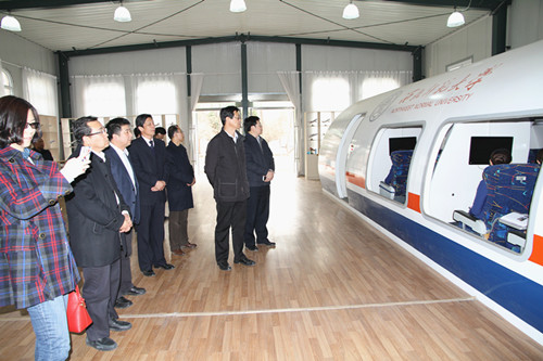 座谈会后,刘向兵副市长一行实地参观了学院民航CBT数字机房、化妆室和民航模拟舱等实训场地。