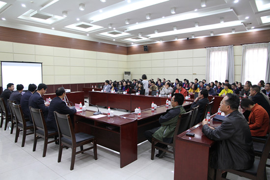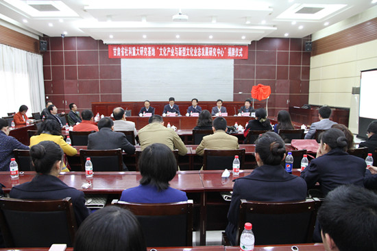刘仲奎校长首先向省委宣传部领导介绍了学校人文社会科学研究和服务地方经济社会发展的基本情况。刘校长强调,近年来,学校充分发挥人文社会科学研究见长的优势,积极服务甘肃省地方社会,产学研用紧密关联,已经形成了一支优秀的文化产业研究团队,在文化产业相关领域的研究和实践在全省处于领先地位,已经成为甘肃文化产业发展以及经济社会发展的重要智库之一。刘校长表示,这次省级人文社科重大研究基地“文化产业与新型文化业态发展研究中心”落户西北师大,不仅是我们西北师大的荣誉,更是我们的责任。学校将以服务甘肃文化产业发展战略、产业结构升级要求为指向,产出高质量、高水平、切合甘肃实际情况的文化产业科研成果,为促进全省文化产业的持续、快速、健康发展作出应有的贡献。
