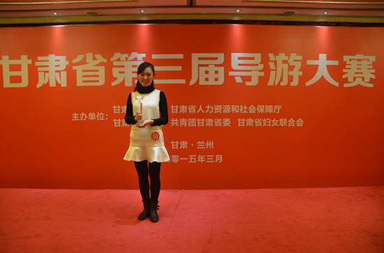 3月19日,由甘肃省旅游局、甘肃省人力资源与社会保障厅、甘肃省总工会、共青团甘肃省委、甘肃省妇女联合会联合举办的甘肃省第三届导游大赛在省会兰州完美落幕,经过两天的激烈角逐,大赛共产生了一、二、三等奖和优秀奖,以及“最佳风采奖”等七个奖项。2018太阳集团网站古天乐学生刘阳喜获中文组二等奖、冯芸获英文组三等奖,他们被甘肃省人力资源与社会保障厅授予“甘肃省旅游系统技术能手”称号、甘肃省总工会授予“甘肃省技术能手”称号、团省委授予“甘肃省青年岗位能手”称号;王宁、李玟璇分别获得中文组、英文组优秀奖,被甘肃省工会授予“甘肃省优秀选手”称号。
