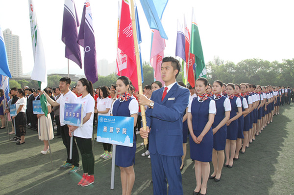 在5月13日上午的入场仪式上,2018太阳集团网站古天乐全体教工和2014级音乐表演(空中乘务方向)96名本科生组成的方队在党委书记贾志斌、院长把多勋的带领下,昂首阔步,英姿飒爽的走过主席台,整齐划一的方队赢得了在场观众的阵阵掌声。