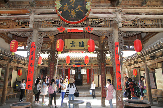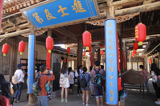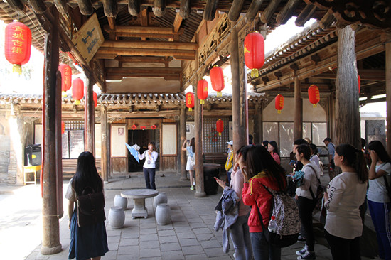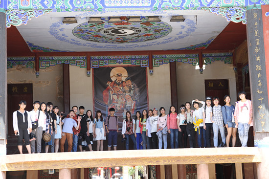 在青城古镇,同学们先后参观了古镇街道集市、高家祠堂、青城书院、碑林、城隍庙以及罗家祠堂,考察了解了青城的历史沿革、古镇建筑特色、科举文化和水烟文化等文化资源情况。