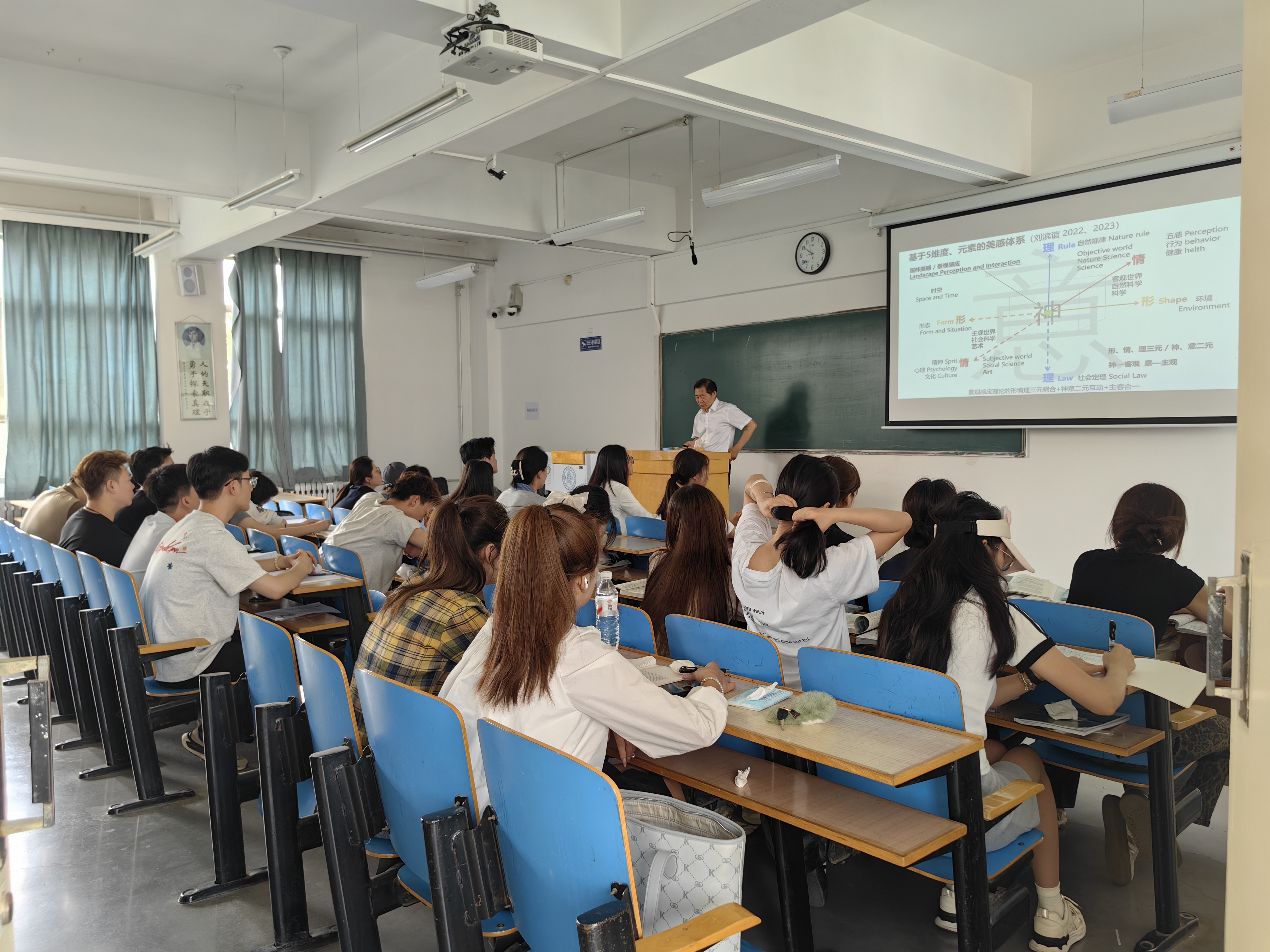 课程教学:聚焦前沿,启迪思维 刘滨谊教授在为期三天的密集授课中,为不同课程带来了前沿主题分享:在《生态旅游与旅游安全》课程中,刘教授深入阐释了“以自然为统领的生态旅游规划设计”核心理念,强调尊重自然规律是生态旅游开发的基石。结合国家“美丽中国”战略,刘教授在《旅游学概论》课堂上生动解析了山水旅游的发展路径。同时,他围绕“乡村振兴的景观人居之路”这一核心议题,分别在《乡村旅游与乡村振兴》和《世界文化产业概论》两门课程中,从人居环境提升、内生动力激发及全球文化视角,系统阐述了景观规划在乡村振兴中的关键作用与实践方向。