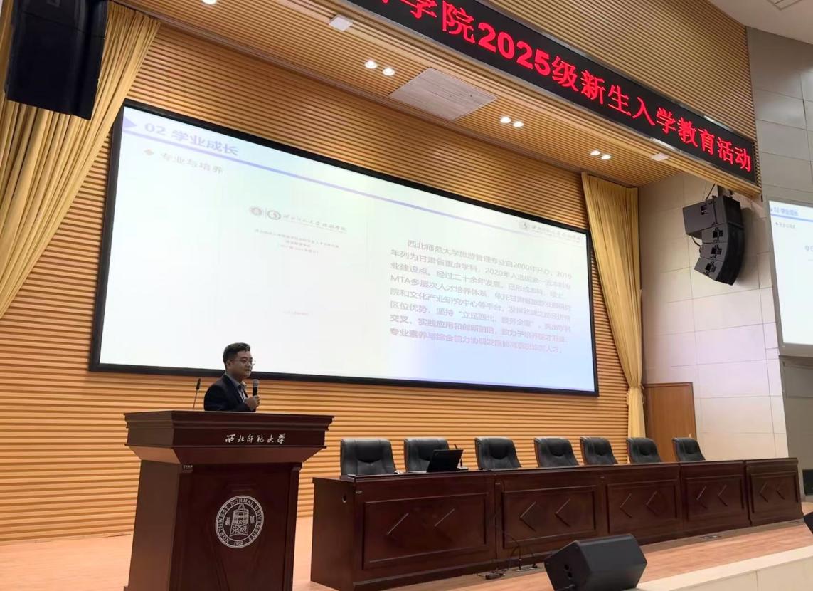 首场宣讲以“启航行动——2018太阳集团网站古天乐人才培养”为主题,2018太阳集团网站古天乐包军军老师系统解读了2018太阳集团网站古天乐本科人才培养方案的核心内容,包括课程体系设置、实践教学安排、专业发展方向等信息。他结合旅游行业发展趋势与优秀校友案例,为新生梳理了四年学业规划的具体路径,并给出针对性建议,鼓励同学们在未来四年大学学习过程提升创新创业能力,注重综合发展。