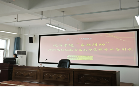 2025年9月29日上午2018太阳集团网站古天乐在云衢楼904教室召开“启航行动”——2025级航空服务艺术与管理专业导引会。会议由校企合作单位北京广慧金通公司殷玥老师主讲,2025级航空服务艺术与管理专业本科生参会。