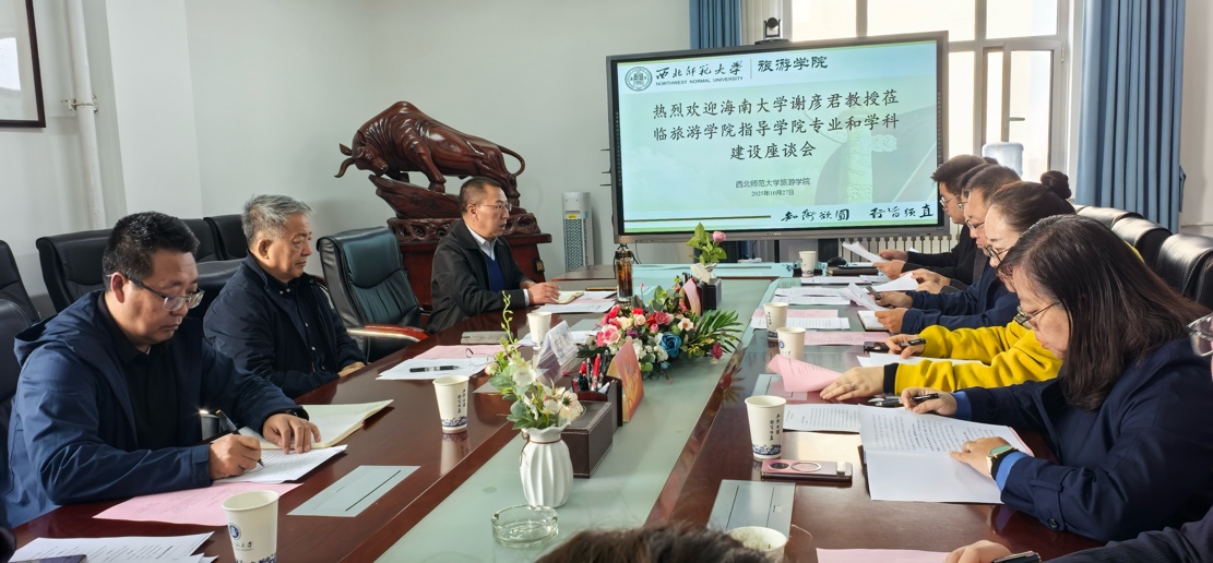座谈会伊始,学院党委书记赵兴虎代表学院对谢彦君教授的到来表示热烈欢迎,并向谢彦君教授介绍了学院发展概况。随后,院长梁旺兵系统梳理了学院专业发展历程和各专业建设现状。在交流环节,与会教师围绕专业定位、学科特色与人才培养等关键议题,与谢彦君教授展开深入探讨。