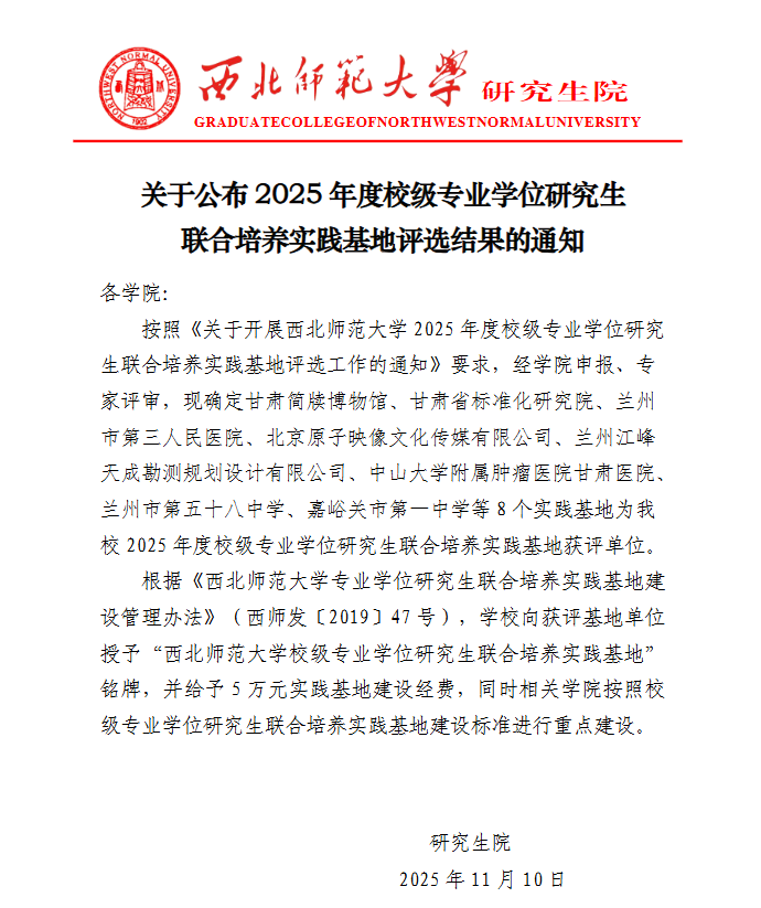 近日,2018太阳集团网站古天乐与甘肃省标准化研究院联合共建的“文化和旅游标准化人才教育实习实训基地”成功入选我校2025年度校级专业学位研究生联合培养实践基地。该基地面向旅游管理硕士(MTA)培养,其获批标志着学院在深化产教融合、完善实践育人体系、服务文旅高质量发展方面迈出重要一步。